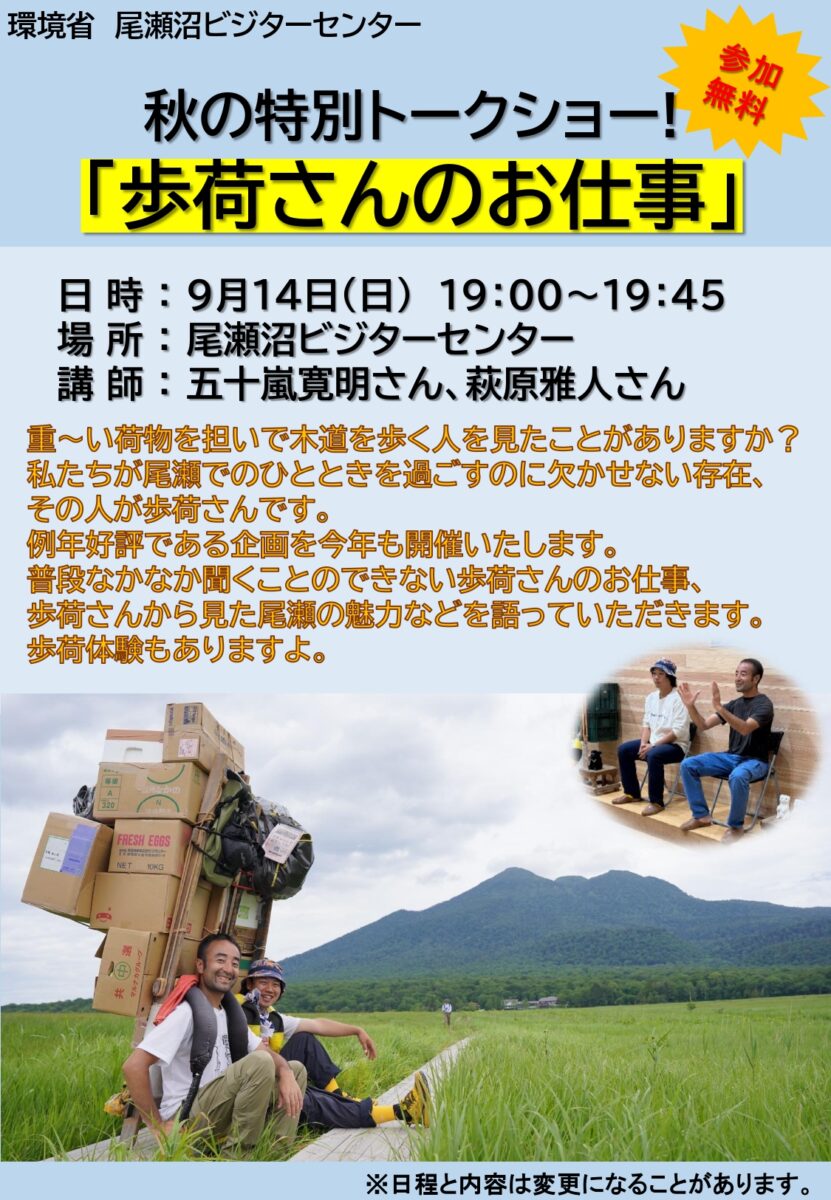 【尾瀬沼ビジターセンターのイベント情報】(10月)(見晴地区)...