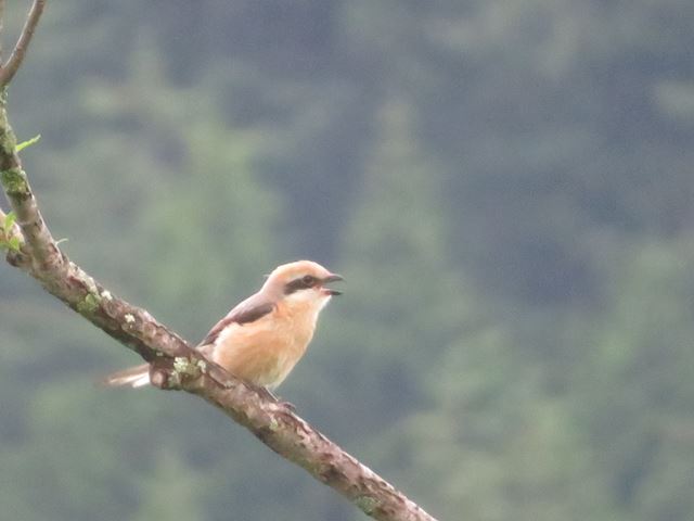 大江湿原の見通しの良い木の枝にとまりモズが囀っていました。