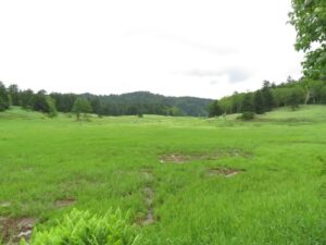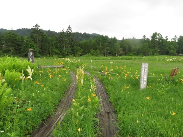 朝からすっきりしない梅雨空の大江湿原です。一時雨や雷鳴も幾度かありました。