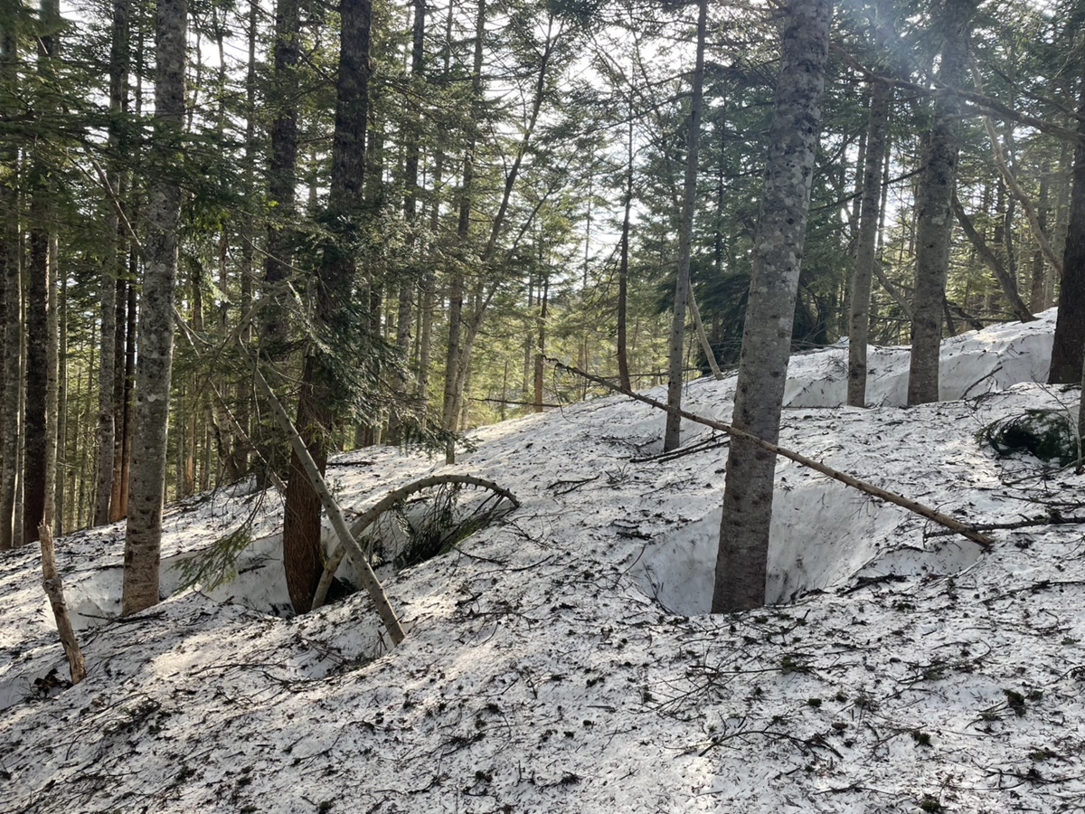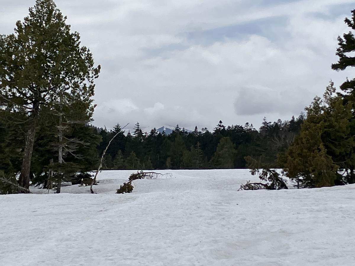 沼山峠のシャトルバス運行は5月24日からとなりますが、こちらの登山道も今のところ雪に埋もれています。標高が高く森林内になるためかなりの積雪があると思われます。