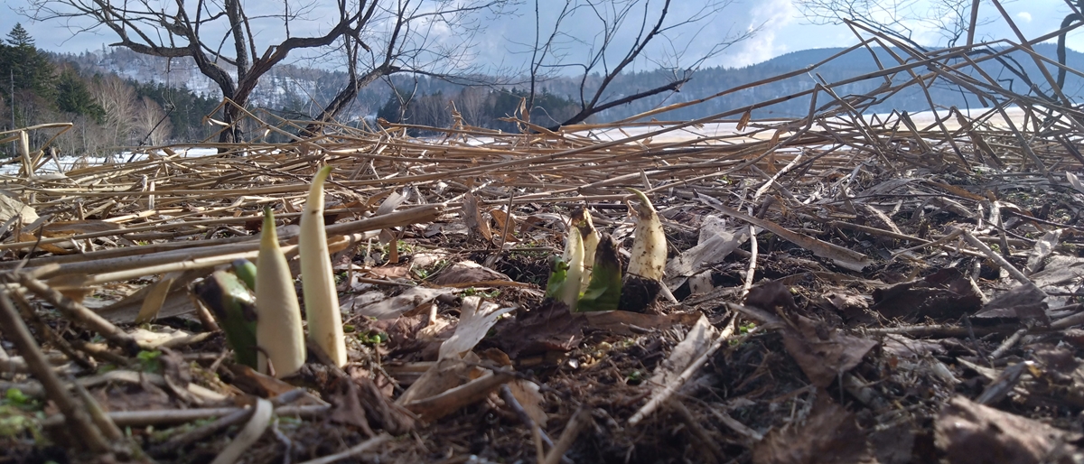 しかし、放射冷却によって冷えた朝には氷点下まで気温が下がることがあるため、ミズバショウも霜焼けで茶色に変色したものも見られます。これから顔を出すミズバショウは、霜の被害を受けず鮮やかな姿を見せてくれることを期待したいですね。