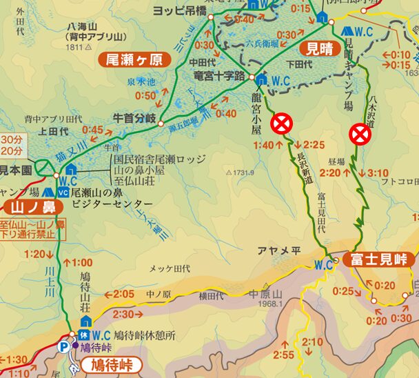 そのため、尾瀬ヶ原(竜宮・見晴地区)から富士見峠へは通り抜けできません。