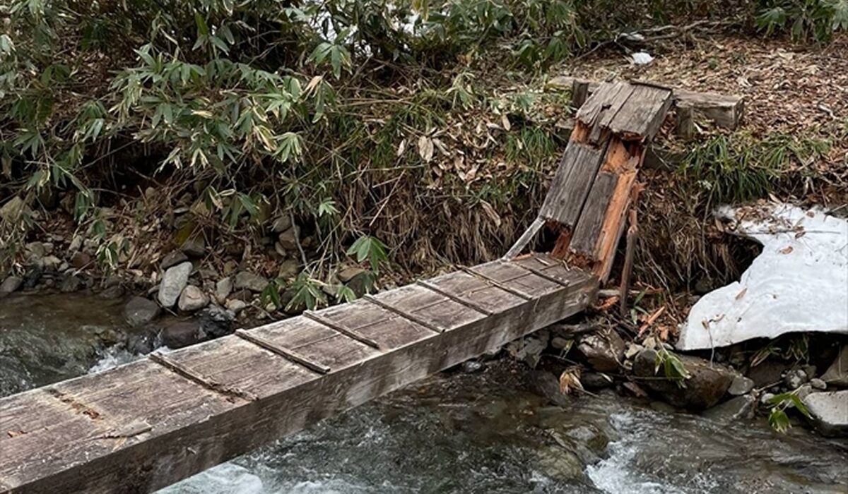 長沢新道(竜宮~富士見峠)の長沢橋と、八木沢道(見晴~富士見峠)の八木沢橋が、破損していて渡ることができません。