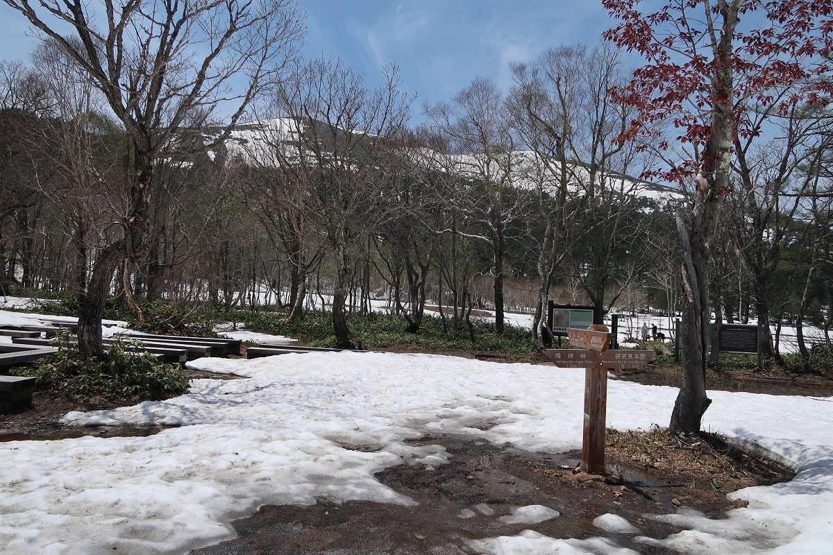 鳩待峠の入山口は、現在残雪を乗り越えていきます。