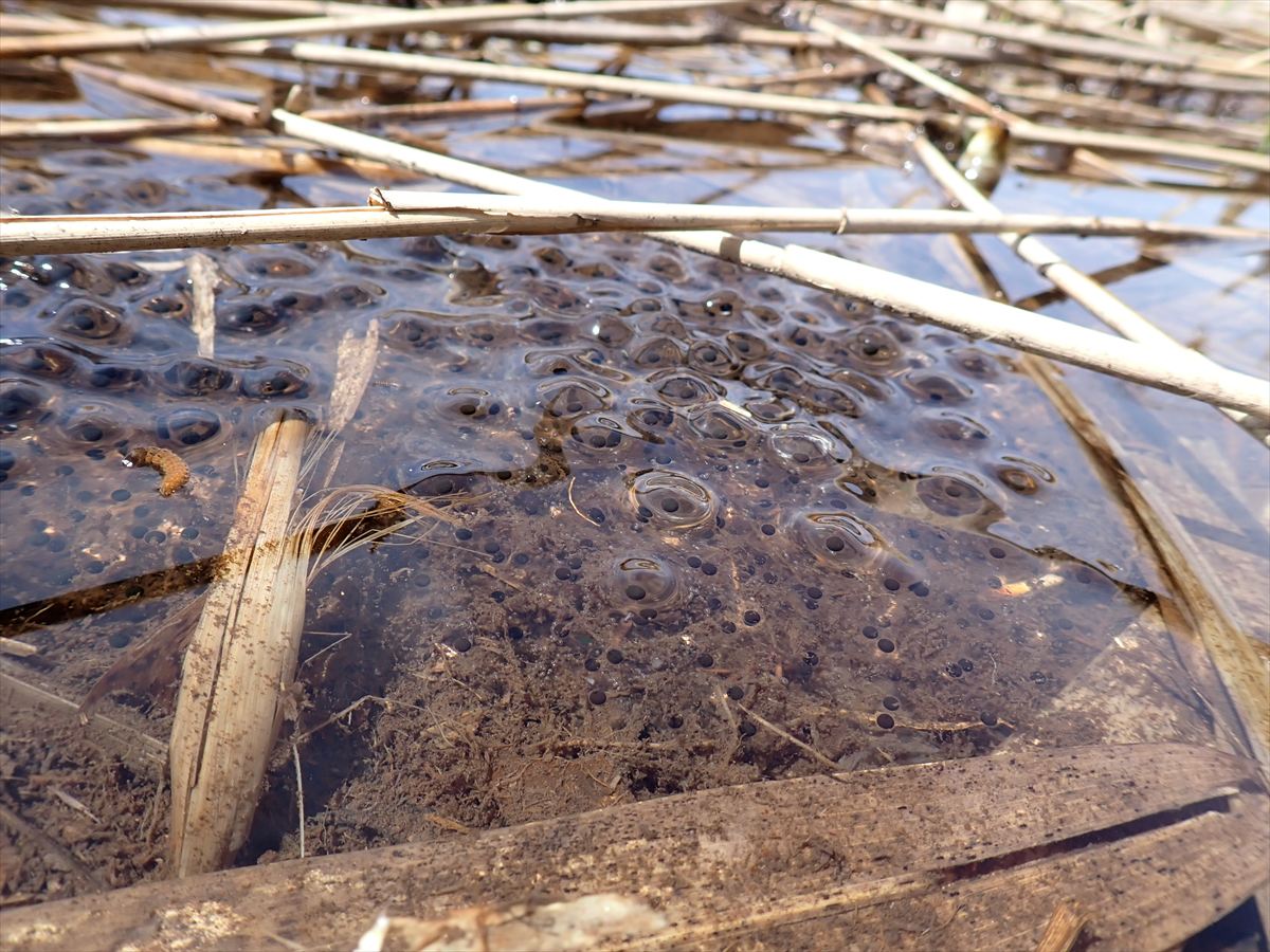 先日こちらで、ヤマアカガエルの抱接行動が見られたので、そのときの卵だったのかもしれません。