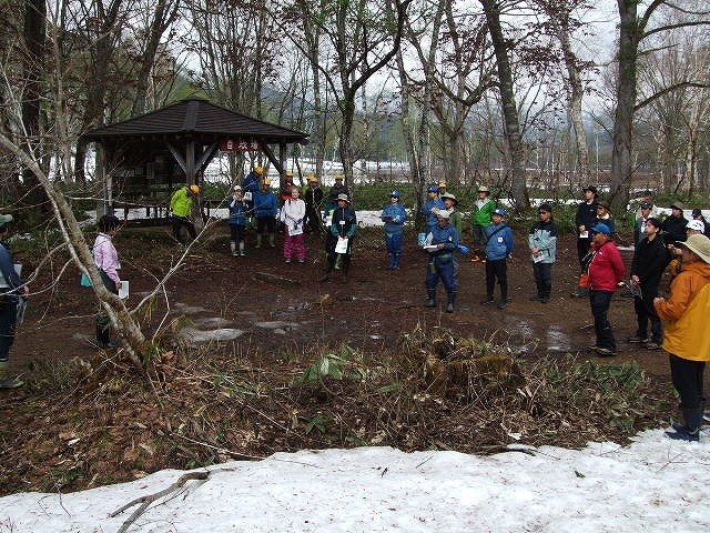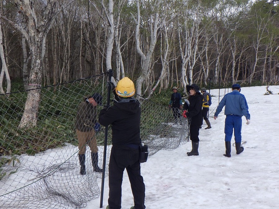 本日、企業ボランティアさんや尾瀬ボランティアさん等、尾瀬に関わる大勢の皆さんで、研究見本園全体を囲むニホンジカの食害から湿原を守る植生保護柵を設置しました。皆さんの尽力により、今年もたくさんの花を見ることができることでしょう。