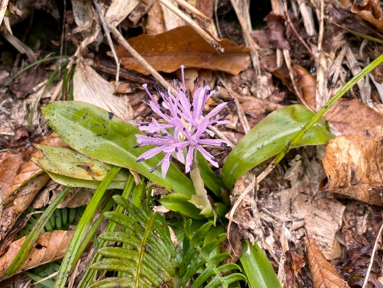 ショウジョウバカマとイワナシが下の写真の階段山側に咲きだしました。谷側は危険なので花を観賞する際には、できるだけ山側に寄ってすれ違いに気をつけましょう。