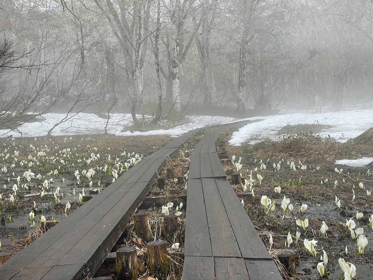 本日は、鳩待峠~山ノ鼻間の残雪の様子や咲き始めた花の様子をお伝えします。