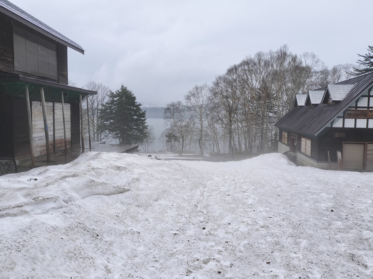 日当たりの影響と思いますが、こちらには、さらに多くの雪が残っています。