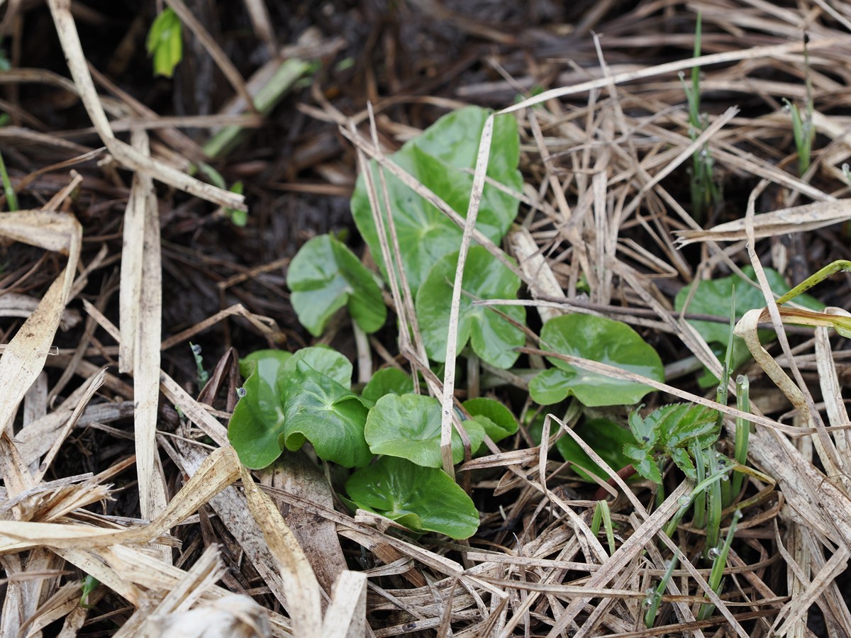 リュウキンカ。わずかながら蕾が見える株もありました。もうすぐ鮮やかな黄色い花が咲くでしょう。