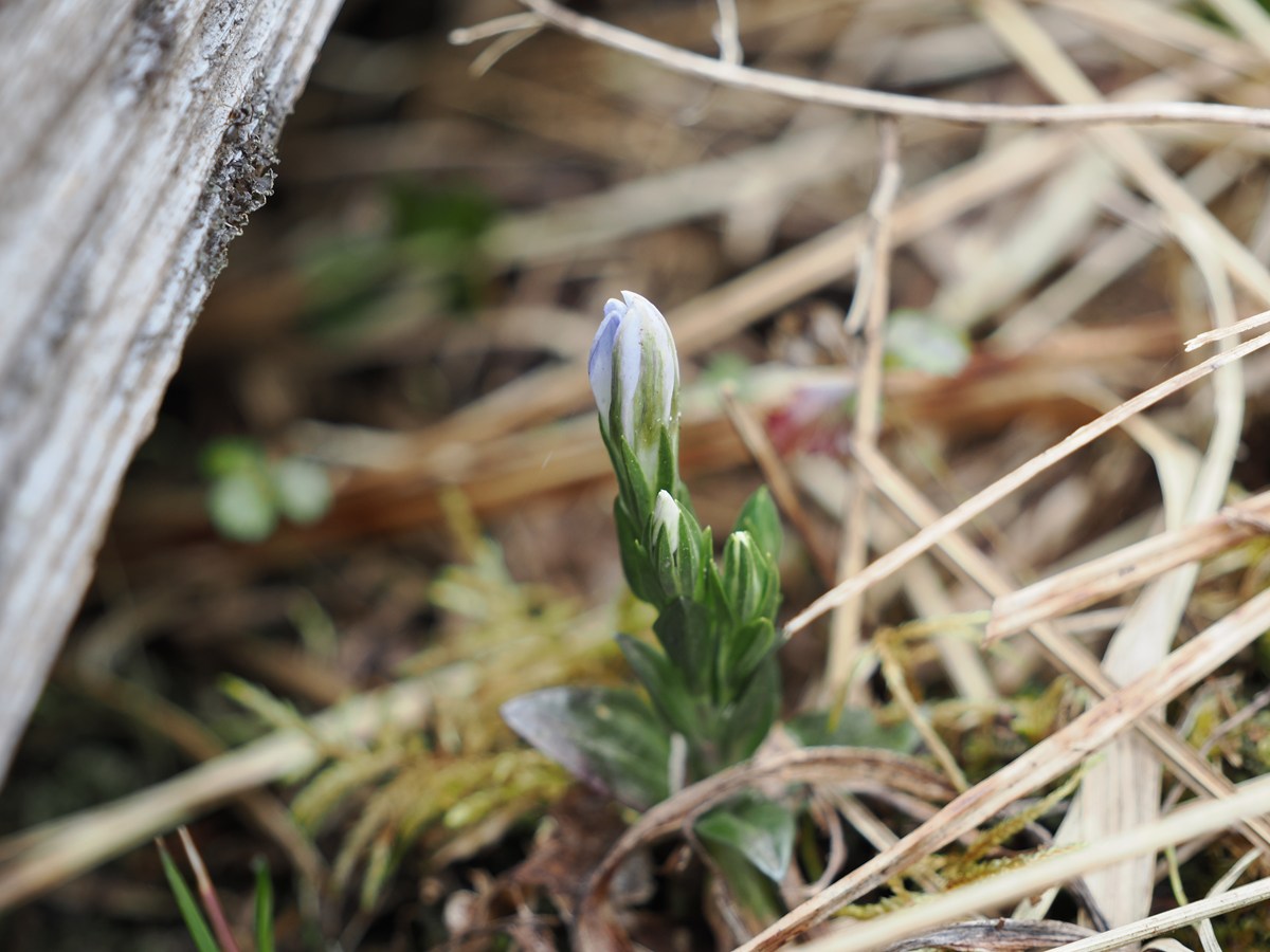明るい陽射しのもとで咲くタテヤマリンドウ、曇りかつ寒い今朝は固く閉じていました。
