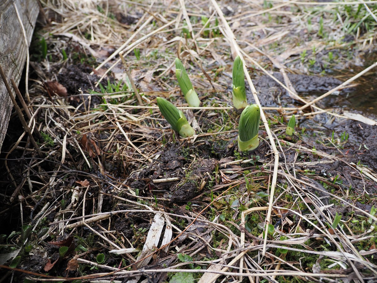 湿原では雪の下に隠れていたミズバショウがそこかしこで顔を見せてくれています。