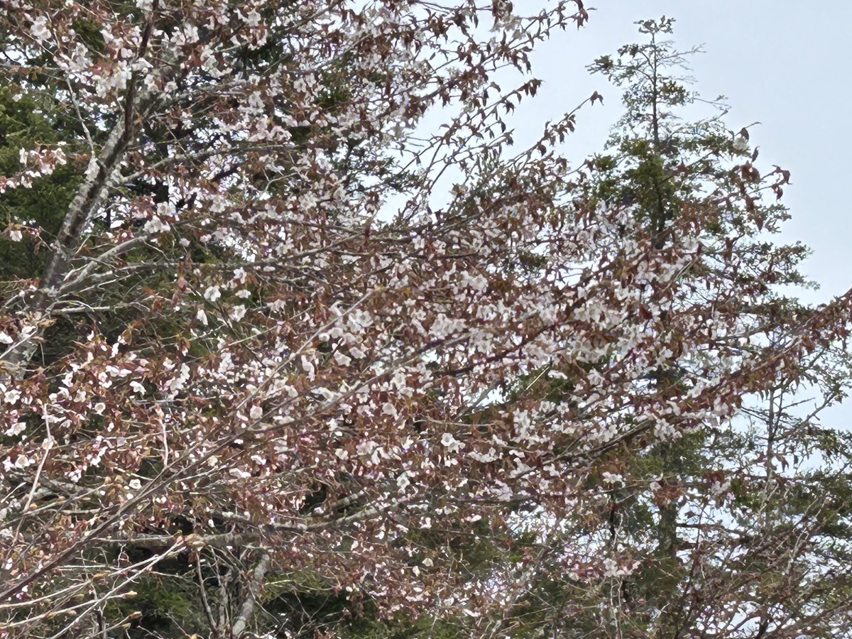 ビジターセンター近くの展望テラス脇ではミネザクラが咲きほころび、華やいでみえます。