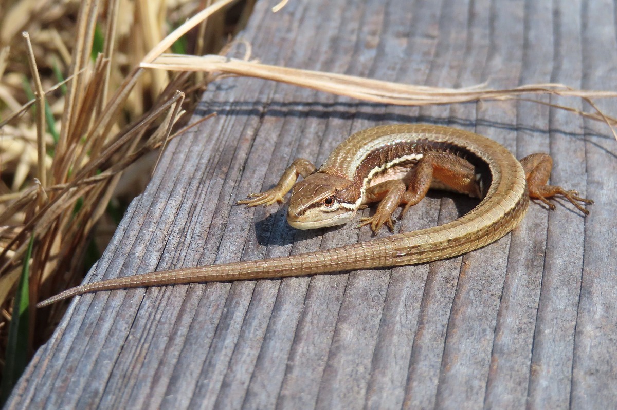 竜宮付近でひなたぼっこをしているニホンカナヘビに出会いました。ぽかぽかと気持ちが良かったのか近づいても動きません。