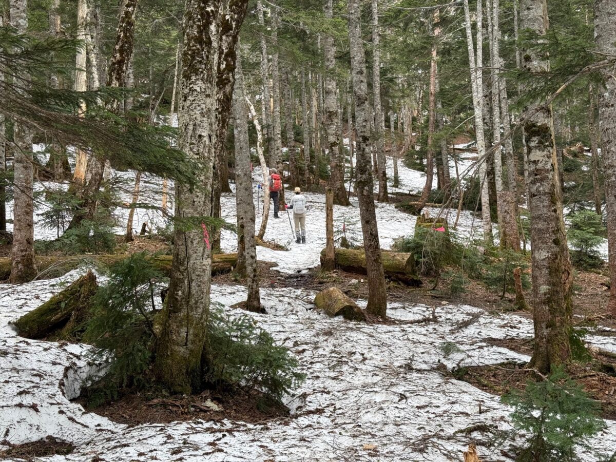 林内はまだまだ雪が多く残っていましたが、山頂付近には雪がまったく無かったです。