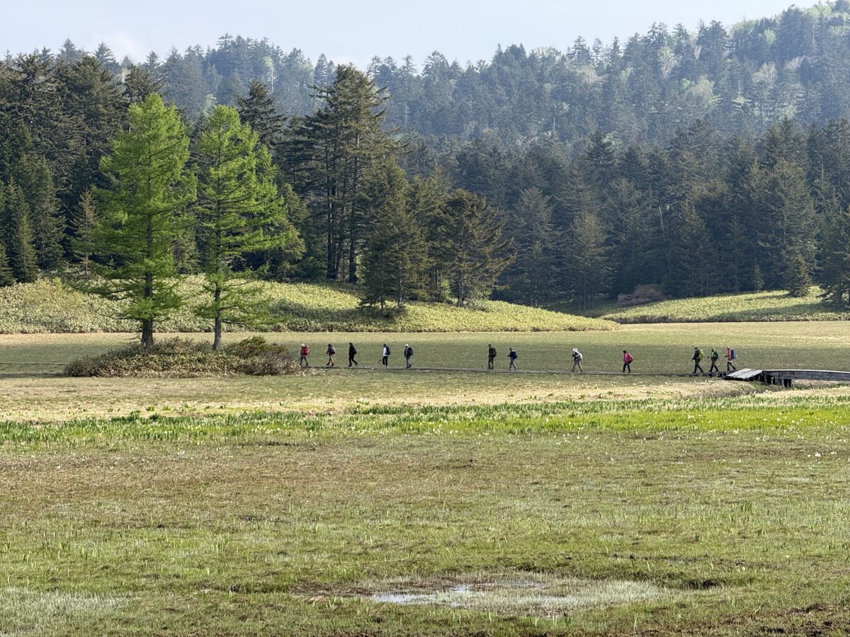 穏やかな日差しの中、ハイカーさん達が散策されていました。これから尾瀬ヶ原方面へ向かわれるのでしょうか。