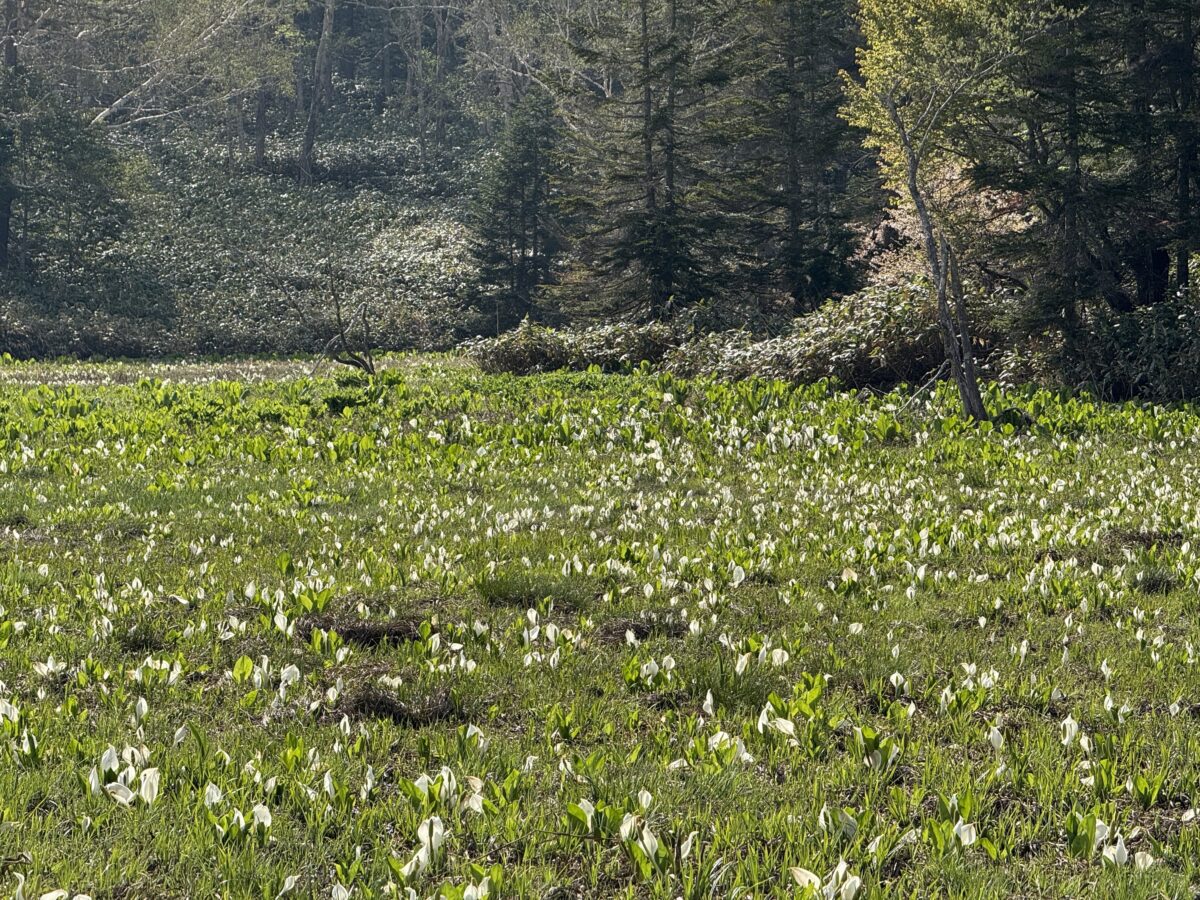 今年は霜の影響を受けた傷んだミズバショウが少ないので、春の妖精らしい美しい姿の群生が見られます。