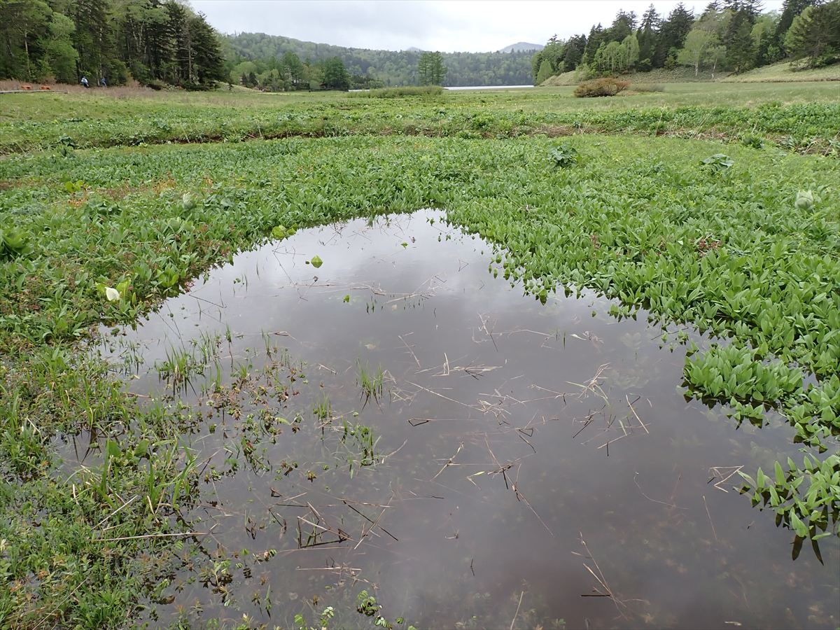 東北地方も昨日、梅雨入りしたこともあり、尾瀬沼は昨夜から朝まで強い風雨でした。午後には雨はあがりましたが、どんよりとした曇り空です。