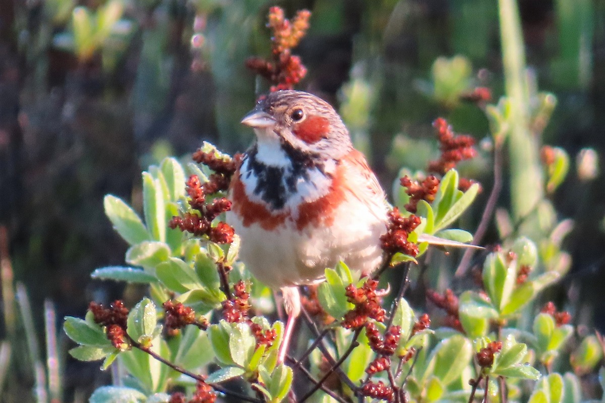 ヤチヤナギの上でホオアカがチッチッと元気に鳴いていました。