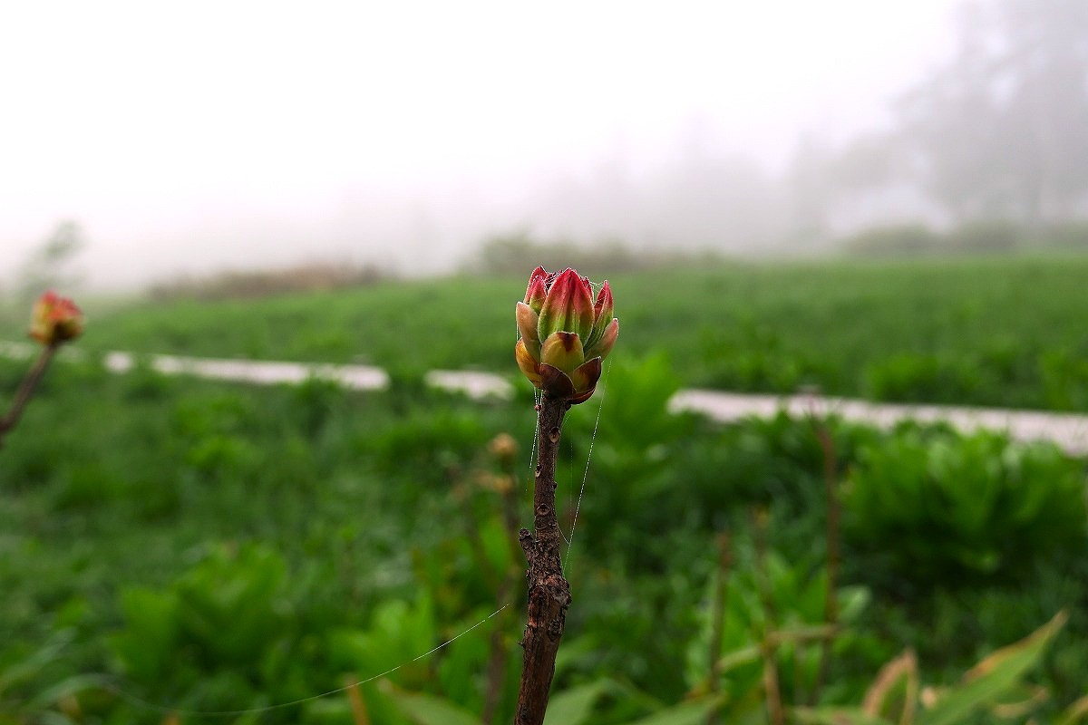 レンゲツツジが蕾を付け始めました。ミネザクラも最盛期です。