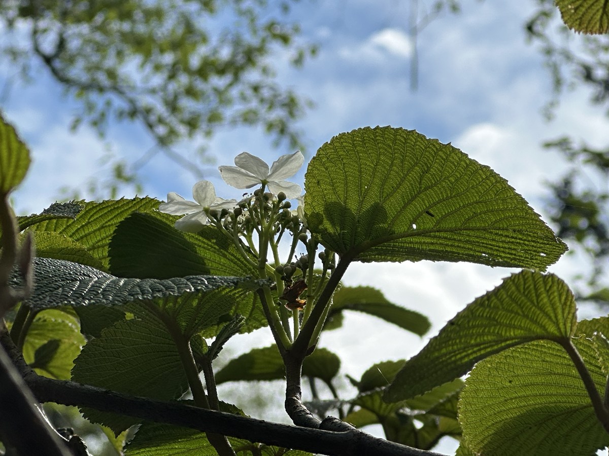 アジサイに似た白い装飾花をつけるため、色どりに乏しい尾瀬沼周辺の森によく映えます。葉がよく虫に食われることから、「虫食われ」が訛り、別名【ムシカリ】とも呼ばれています。