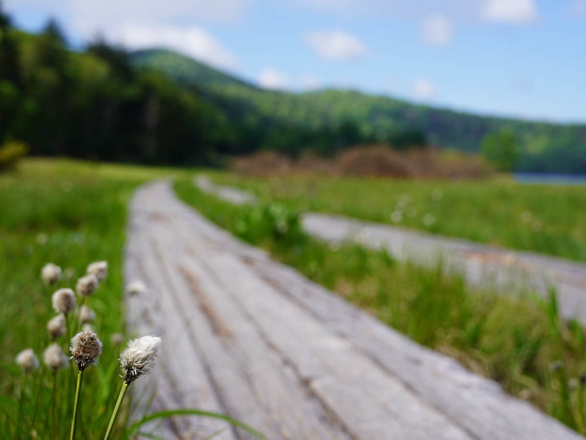 【木道沿いのワタスゲ】