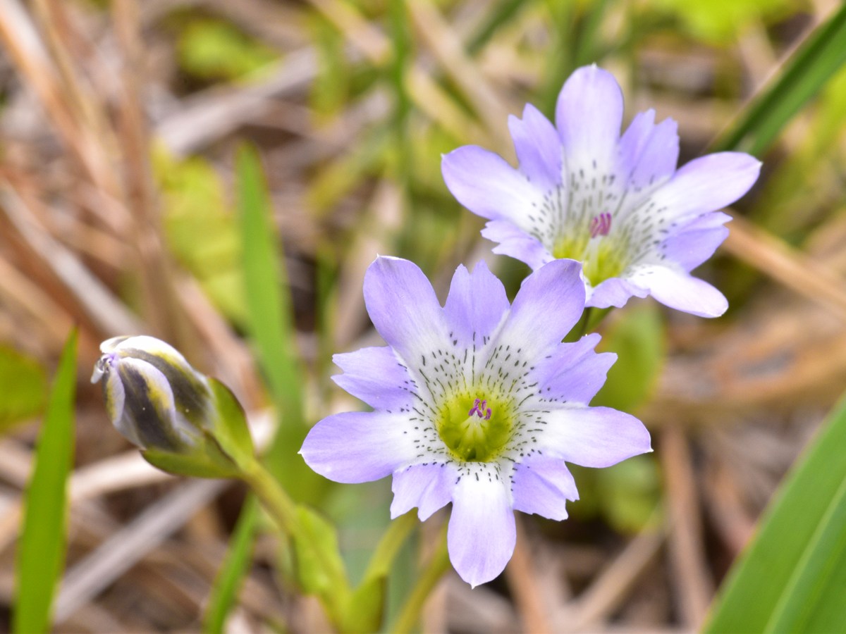 大江湿原でよく見られるタテヤマリンドウは青空のような色をしているものがほとんどですが、稀に淡い赤紫色の株や真っ白な株を見つけることがあります。湿原をよく覗いてみると普段とは違う色に出会えるかもしれませんね。