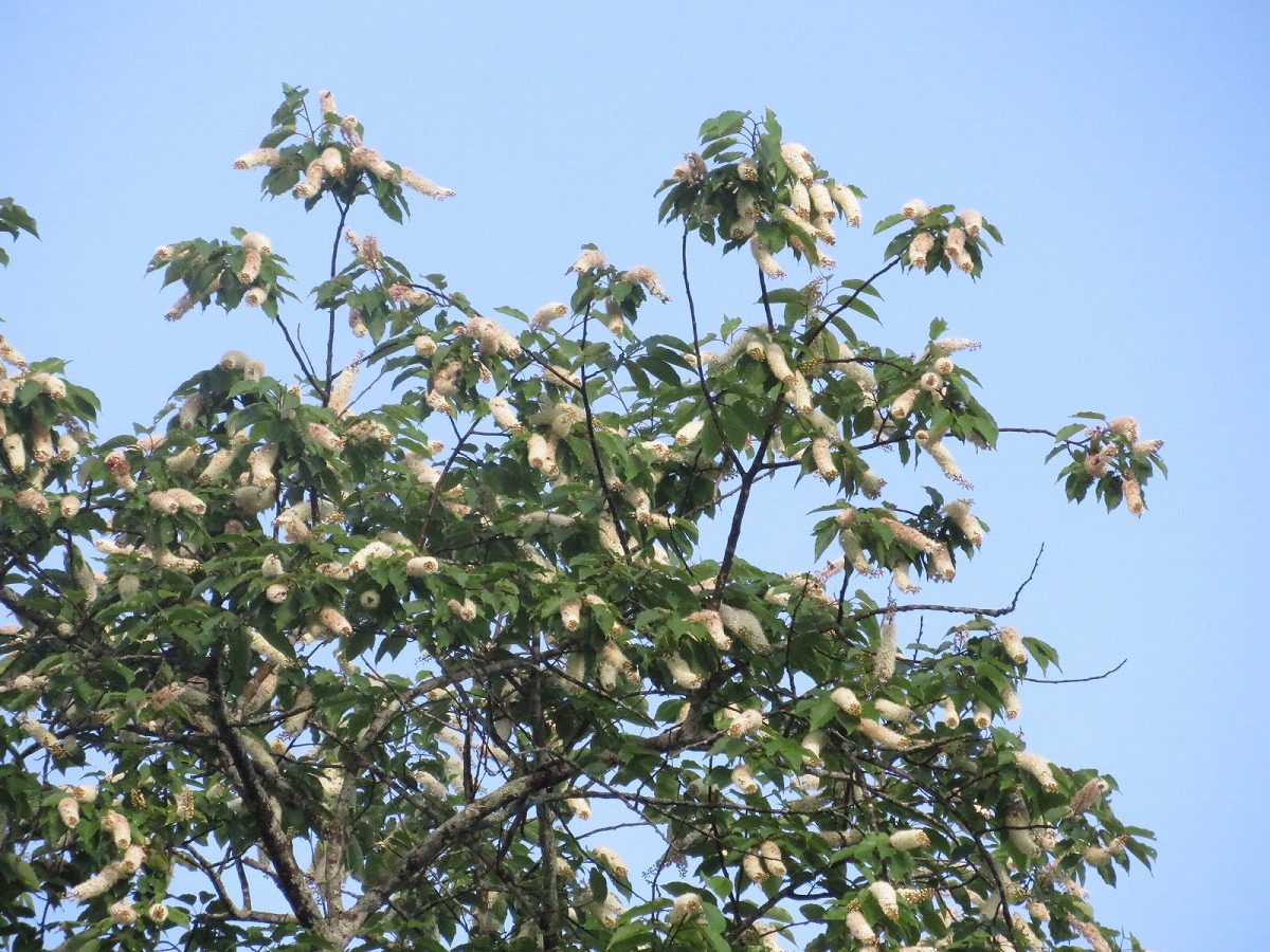 山の鼻ビジターセンター周辺の木に、大きなブラシ状の花がたくさんついています。一つの房をよく見ると、5枚の花弁をもった小さな花が集まっているのが分かり、なるほどサクラの仲間だなと感じます。