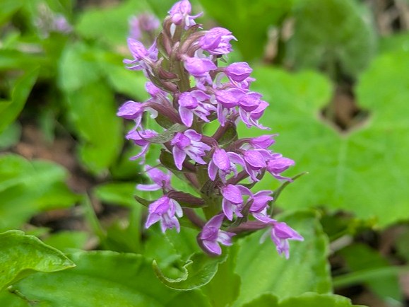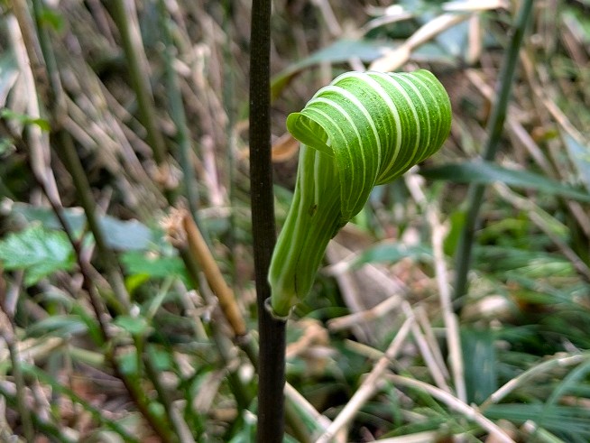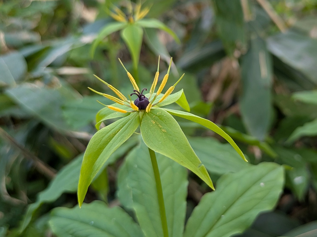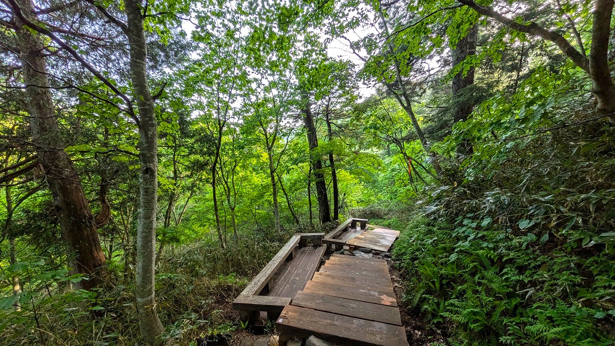 新緑の登山道を進むと色とりどりの花やちょっと変わった花が咲いています。頭の上、足元、葉っぱの裏、ゆっくり歩くと色々な花を見つけることができます。