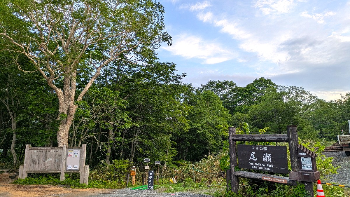 尾瀬ヶ原への登山口には大きな尾瀬の看板があります。まずはココで記念写真ですね。「尾瀬に来た!」という気持ちが高ぶります。