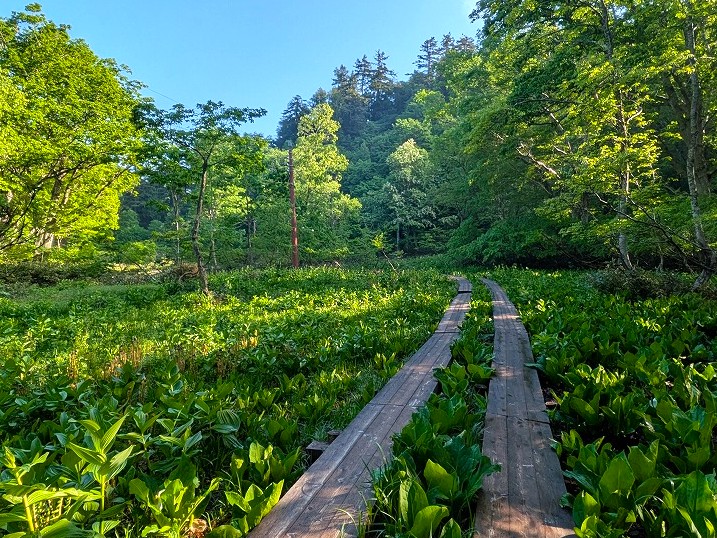 テンマ沢湿原では、ミズバショウからコバイケイソウへと花リレーのバトンが渡されたようです。