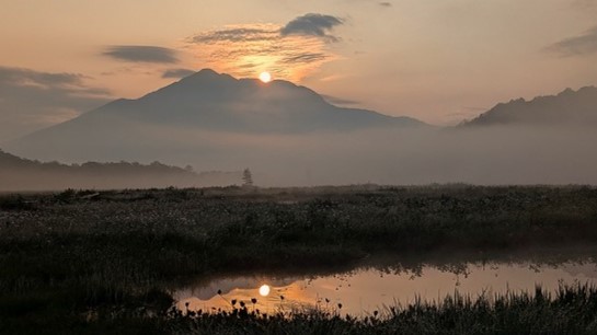【研究見本園の夕焼け、尾瀬ヶ原の朝焼け】