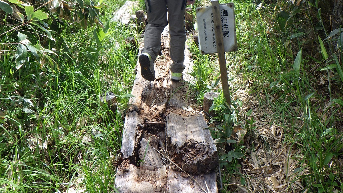 長沢新道(竜宮~富士見峠)の長沢橋は、破損していて渡ることができません。そのため、尾瀬ヶ原から富士見峠へは通り抜けできません。荒れた木道では、足元に注意して歩きましょう。