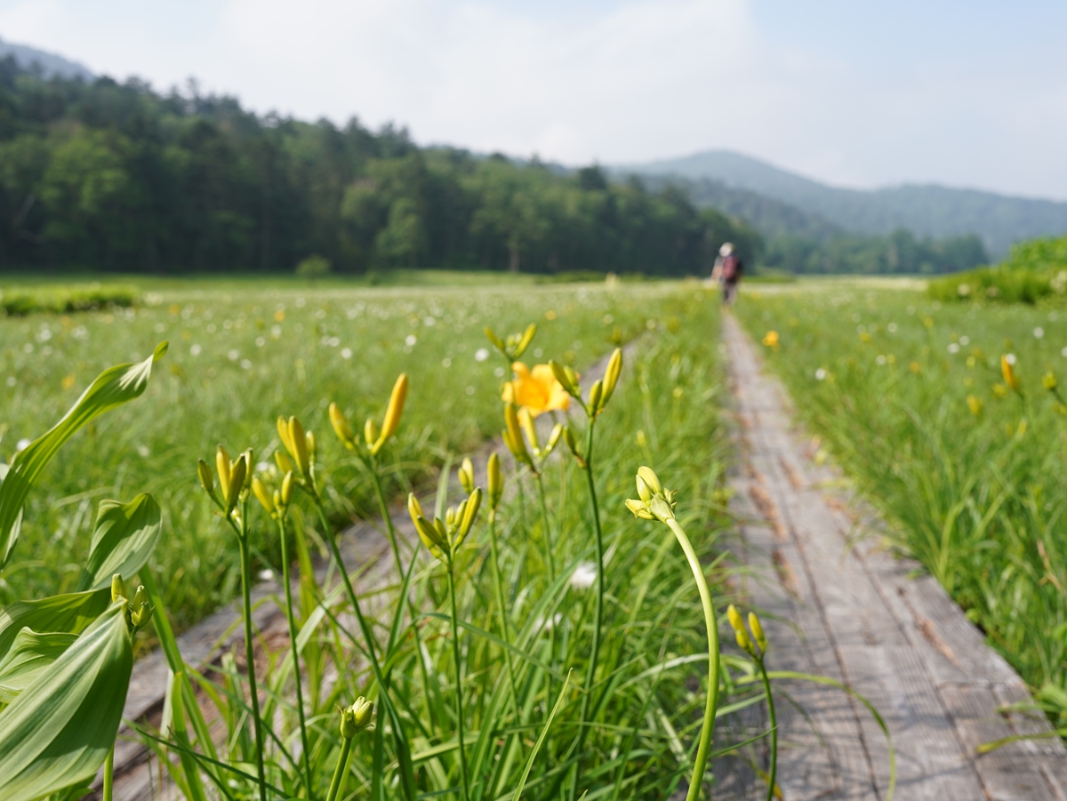 本日は、大江湿原周辺の風景を交えながら、ニッコウキスゲの開花状況についてお伝えします。