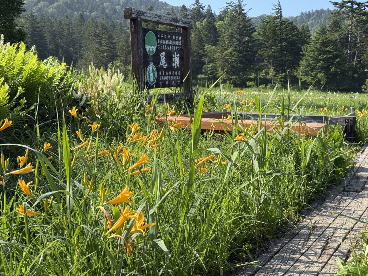 【尾瀬看板のニッコウキスゲの様子】