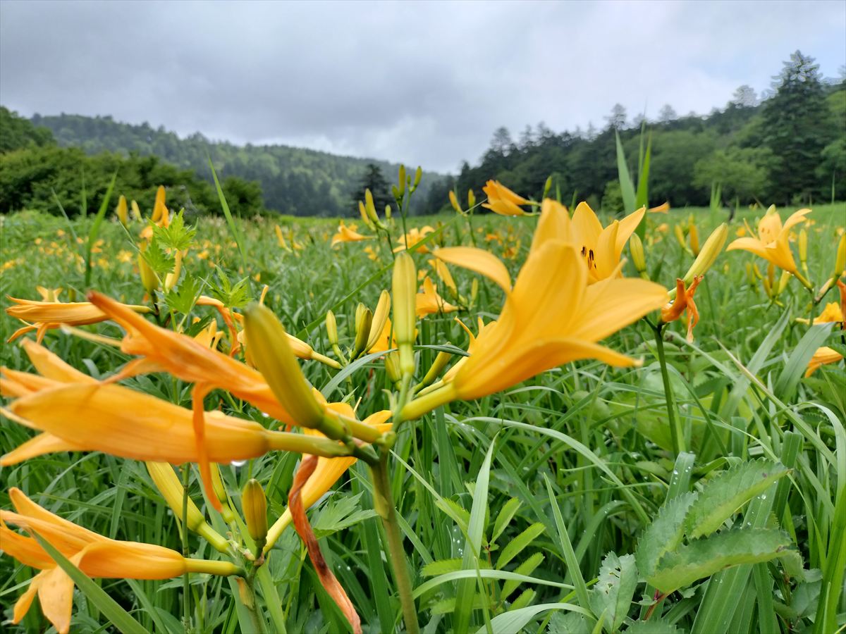 ニッコウキスゲが咲き始めましたが、その多くが蕾ですので、見ごろのピークはもう少し先になると思います。