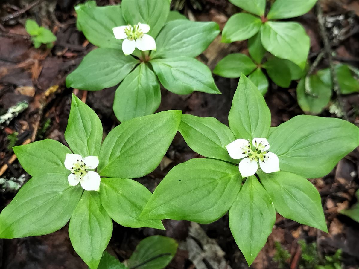 ゴゼンタチバナがビジターセンター周辺で咲き始めていますが、少し日陰になるような場所に咲いています。