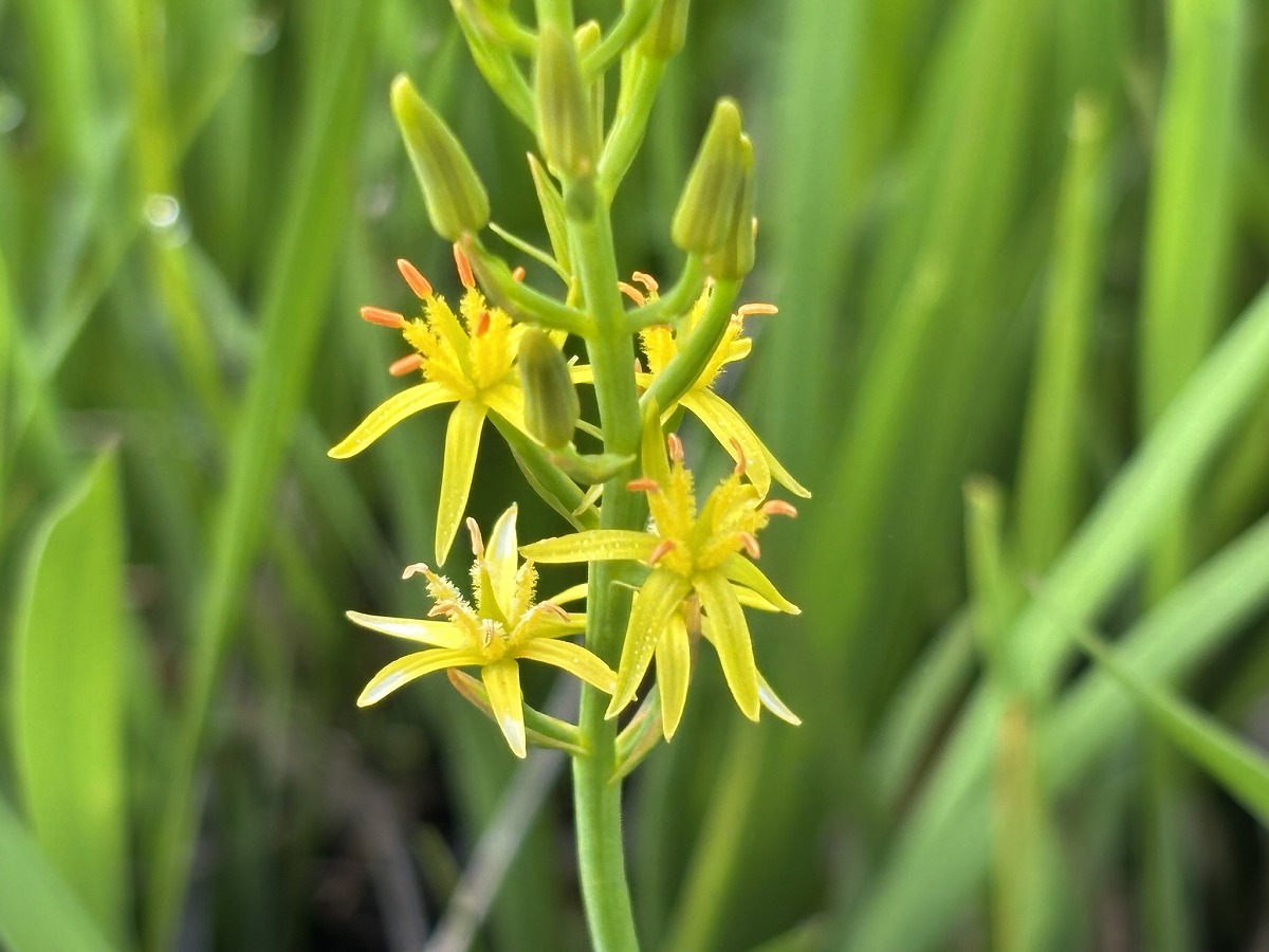 キンコウカの花が増えてきました。小さな花をよく見ると、星型をしています。黄色い花びらに雄しべの赤色がアクセントになって、小さいながらも色鮮やかです。