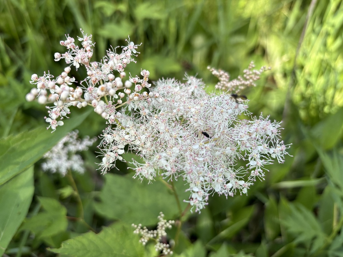 オニシモツケの花も、咲き始めました。小さな花がたくさん集まっていて、花が開くと白いレースのようです。
