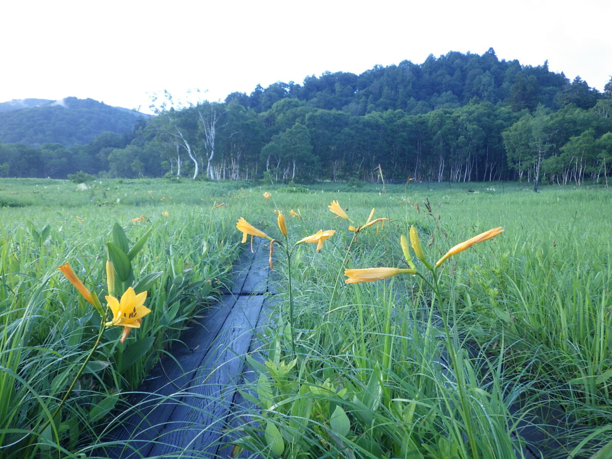 ニッコウキスゲが見頃を迎えています。朝開いた花は夕方にはしぼんでしまう一日花と言われていますが一本の花茎から複数の蕾をつけ、次々と花を咲かせていきます。そのため割と長い間、花を見ることができます。ぜひ夏の尾瀬を感じにお越しください。