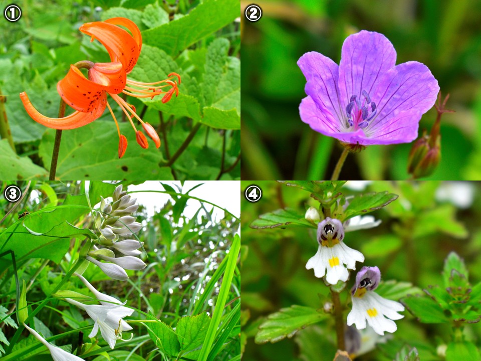 ② ハクサンフウロは地域によって花弁の色に濃淡がありますが、大津岐峠周辺では、比較的濃い紫色の花が多く見られました。