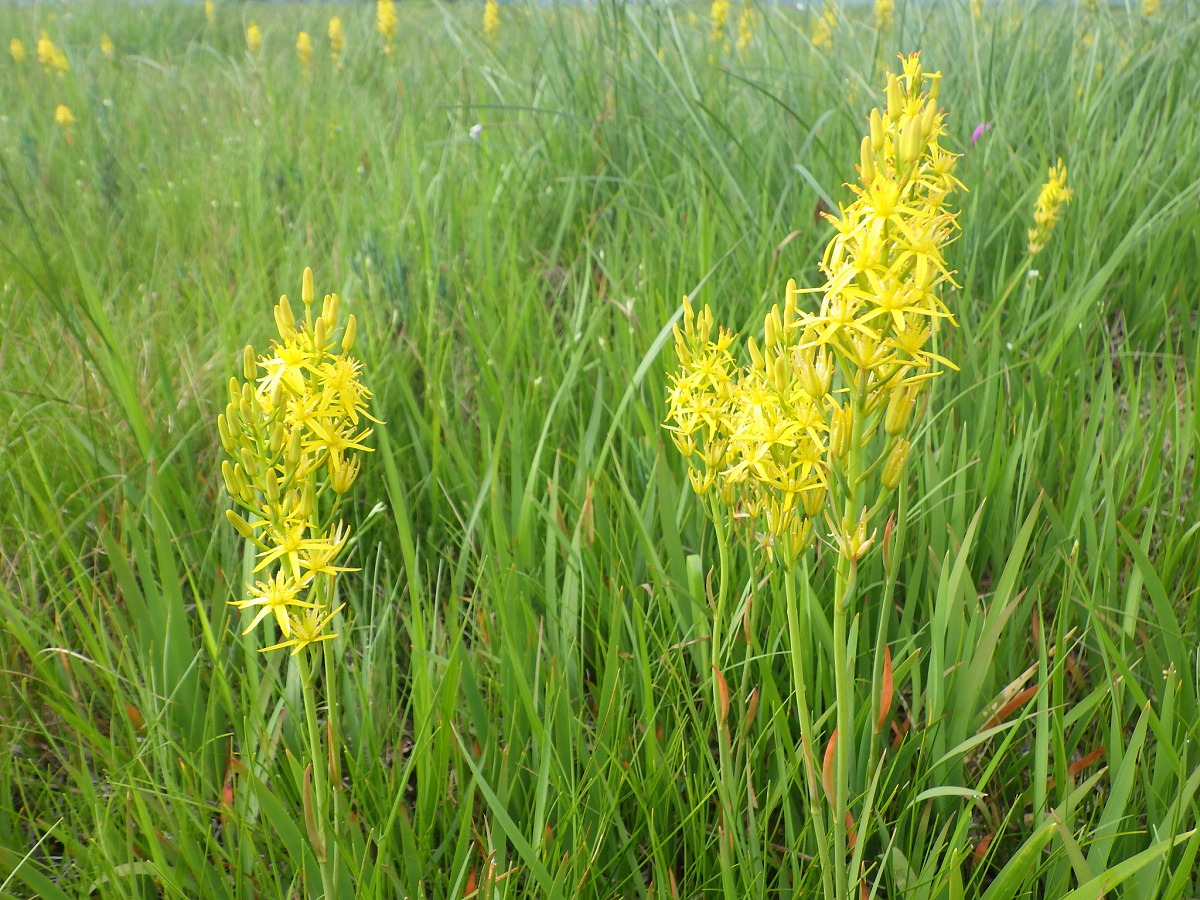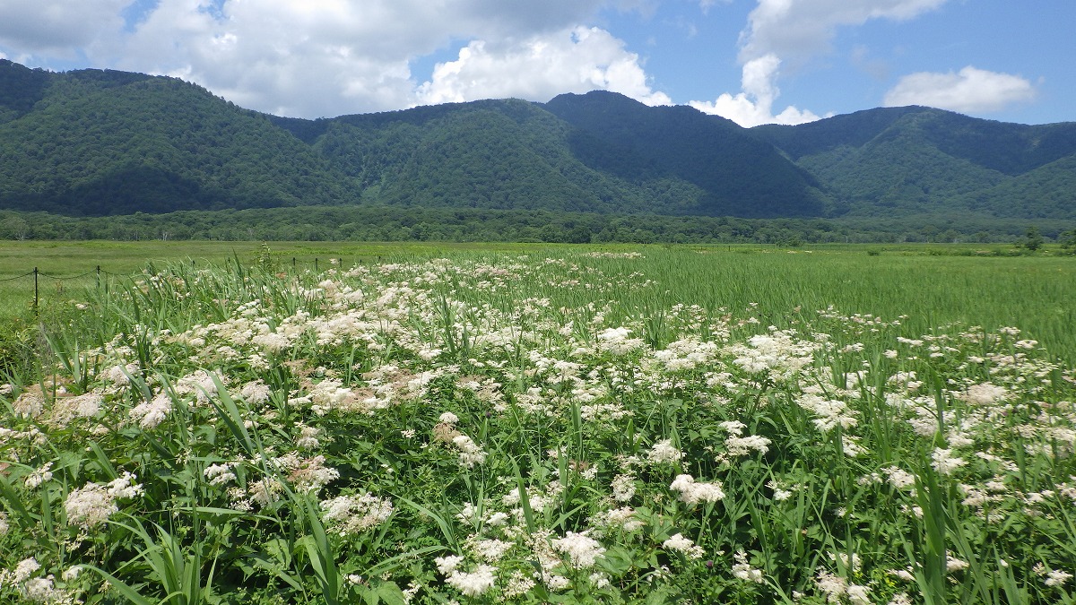 キンコウカがたくさん咲き、ところどころで群生しています。黄色い花をよく見ると、星形をしていてきれいです。そのほかにも尾瀬ヶ原ではたくさんの花が咲いています。夏真っ盛りの尾瀬にぜひいらしてください。