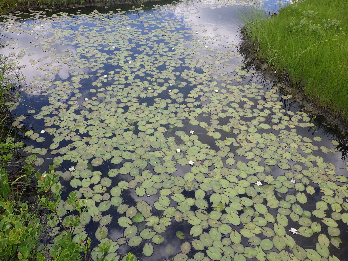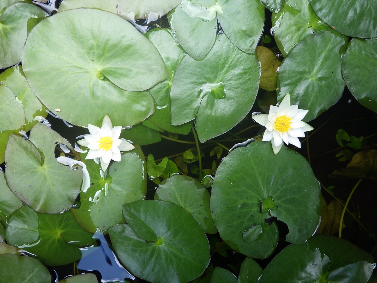 池塘ではヒツジグサが咲いています。天気のいい日は午前10時頃から開き始めます。
