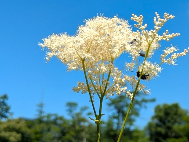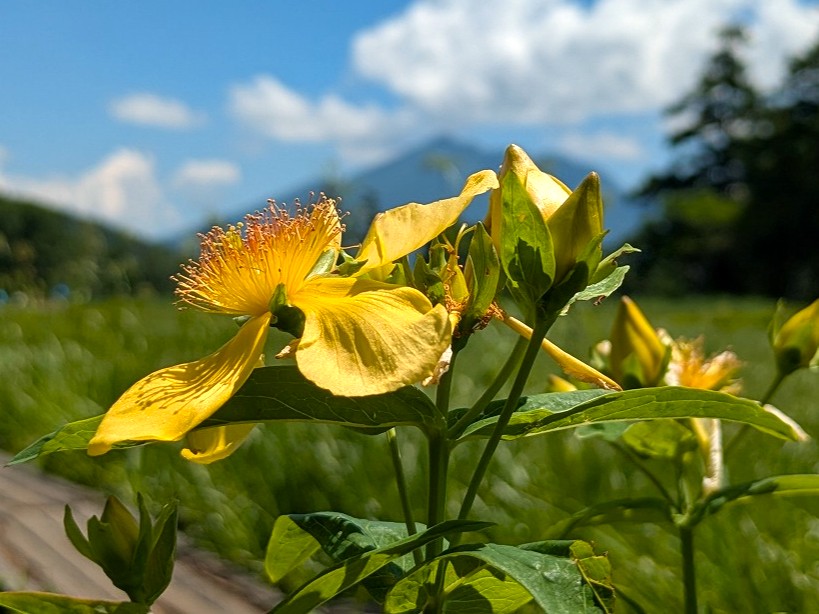 夏空の下、新たな花のバトンをもらった植物たちが咲き出しています。