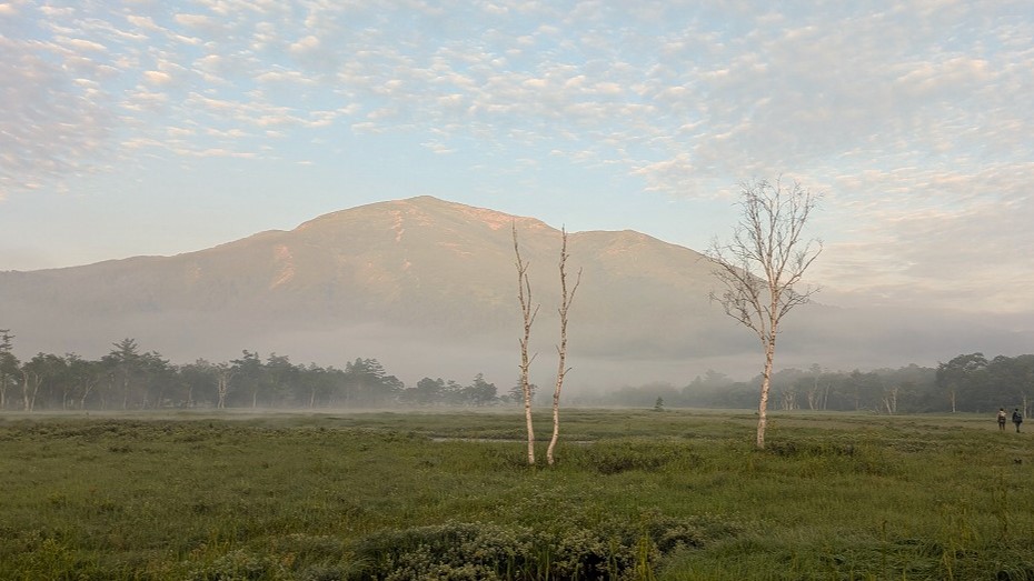 今朝は東雲の空が薄紅色に染まり、湿原が目覚めました。凛とした空気に包まれています。