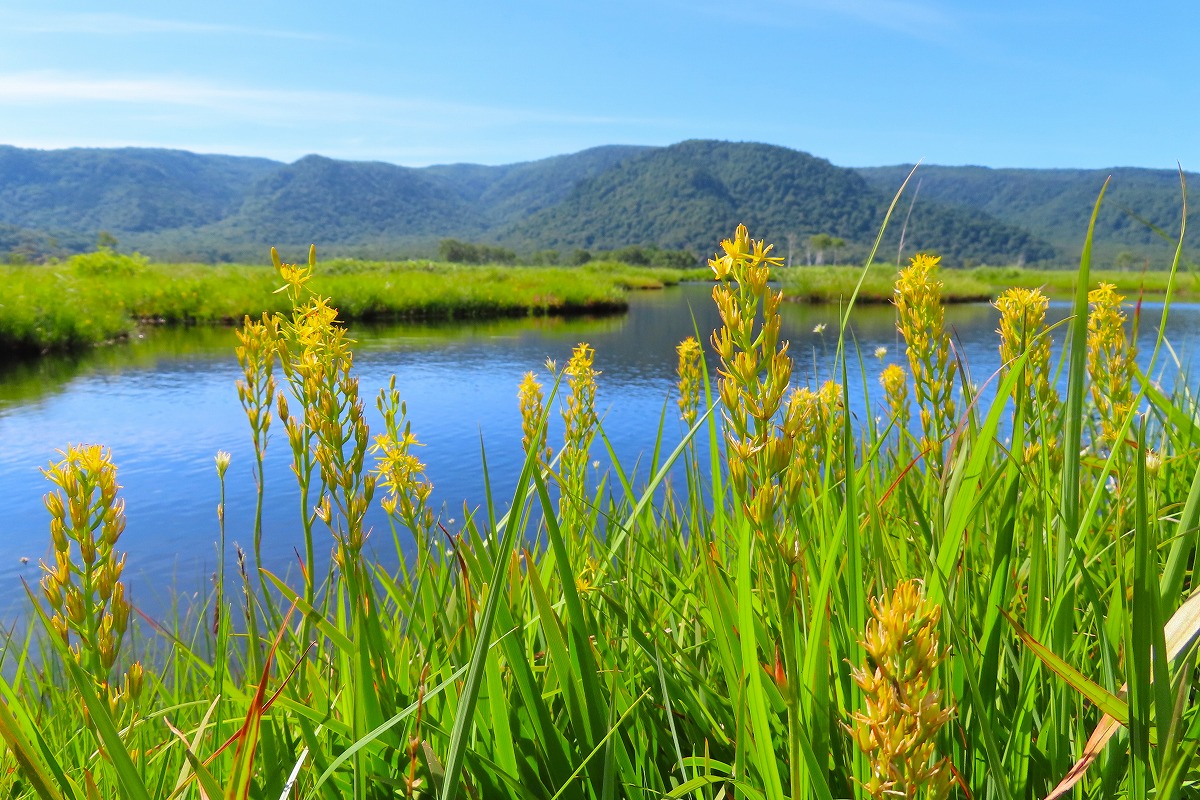 現在、尾瀬では夏のお花が咲き誇り、キンコウカの群生が見事です。日ごとに移りゆくお花や自然の美しさを味わいに、ぜひ尾瀬へいらしてください。