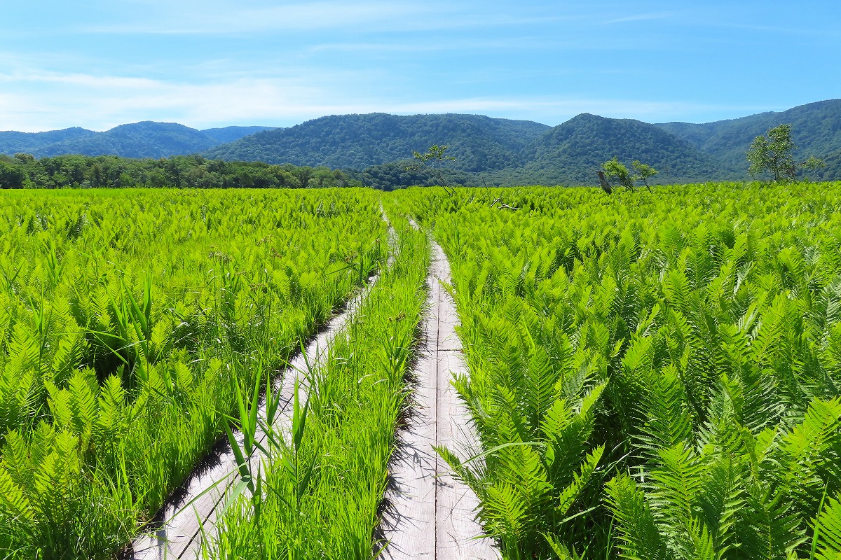 竜宮十字路からヨッピ吊橋間にはヤマドリゼンマイの群生が広がっています。緑の絨毯を広げたような景色は圧巻です。