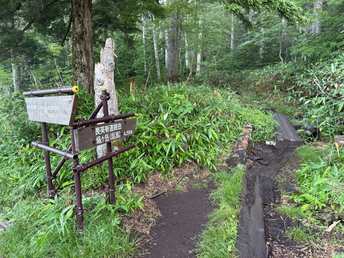 まずは長蔵小屋さんの裏手にあるビュースポットでこれから登る燧ヶ岳を望んで、長英新道登山口から出発しました。