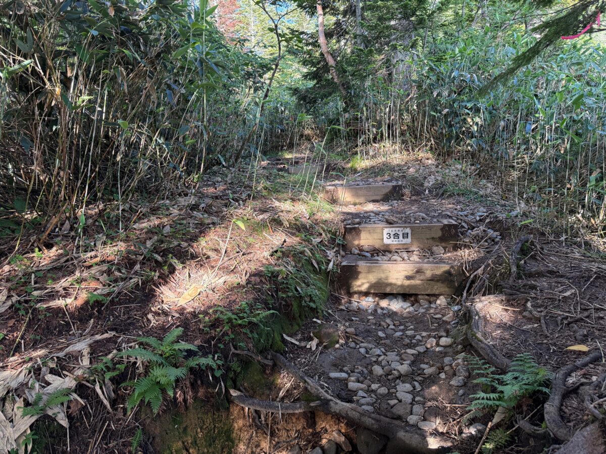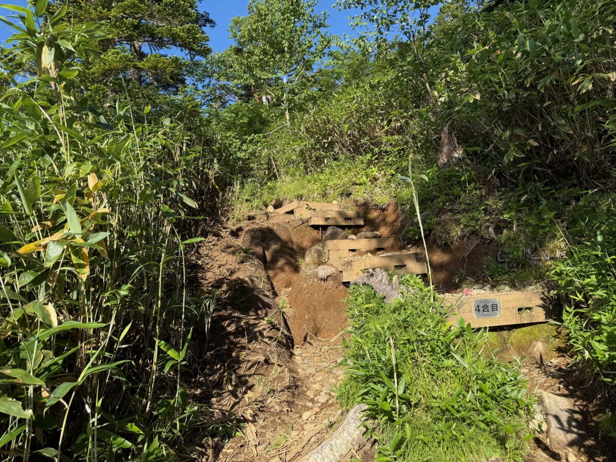 8合目の標識の前は、ぬかるんでいますので注意して通りましょう。俎嵓が目の前に迫ってきました。