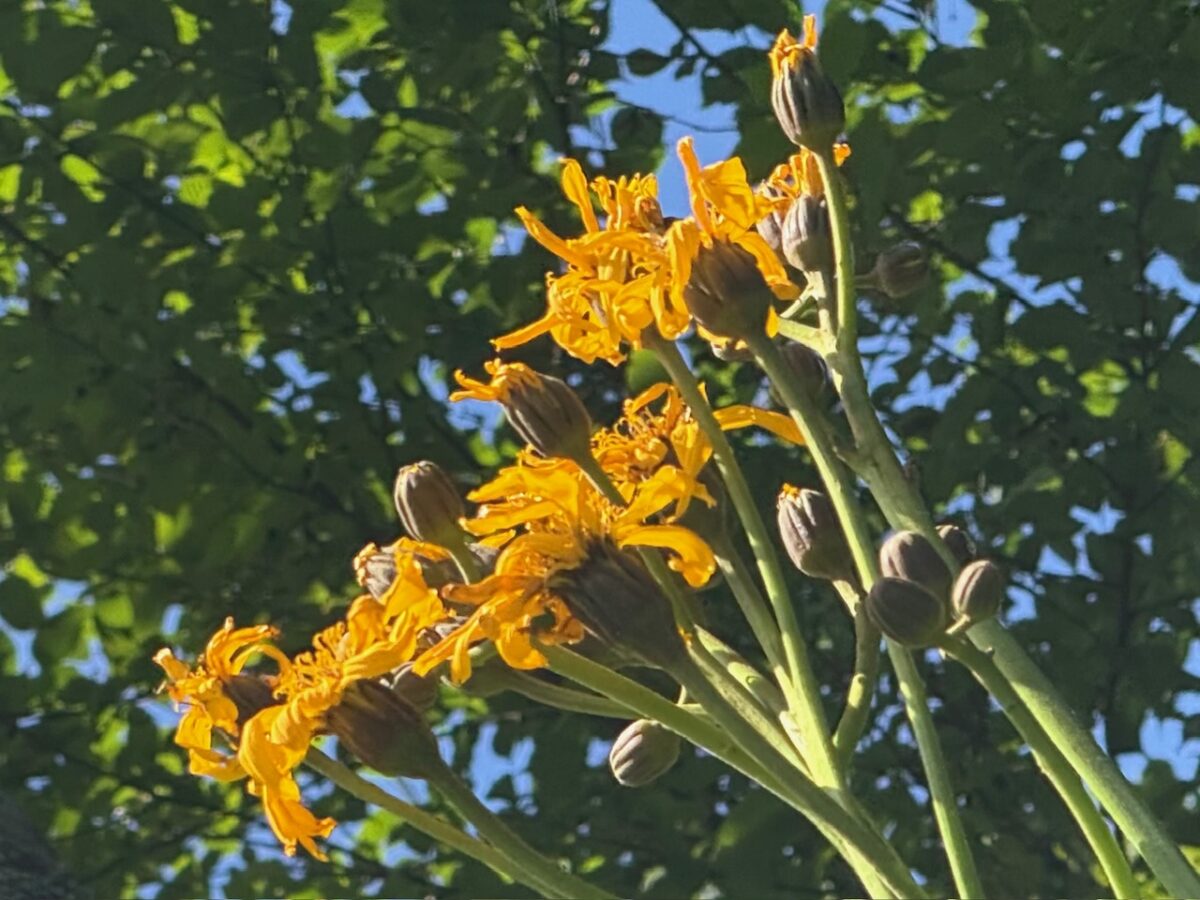 6合目には開けた場所があり、マルバダケブキの黄色い群落があります。